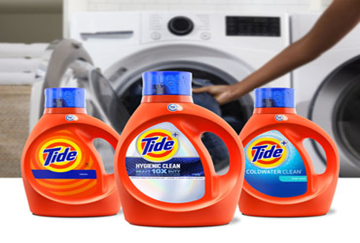 A) Detergents: Liquid or powder formulas for washing clothes.